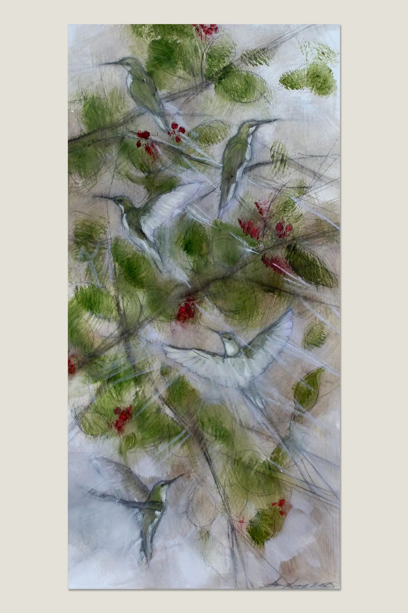 Amy's paintings, characterized by their vibrancy, a sense of looseness, and a comfortably unconventional style, draw inspiration from remote mountain hideaways in Wyoming, the Wallowa Mountains of Northeastern Oregon, as well as the striking landscapes of Arizona and the Sonoran Desert. Residing in these diverse regions, Amy cultivates a deep appreciation and fascination for nature, wildlife, and ecology. Largely self-taught but supported by an Art Degree from Eastern Oregon University, Amy's career has evolved from a childhood dream to a significant reality.
