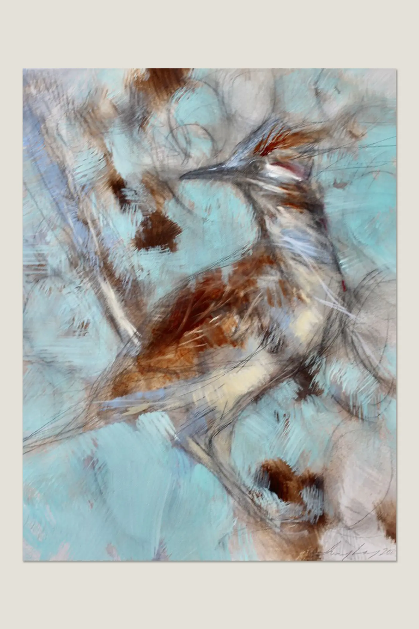 She predominantly uses oil pigment, along with graphite and charcoal, to bring her artworks to life. A bold use of color, forceful yet straightforward design, and a transient quality influenced by her early years painting solely in watercolor, all contribute to the highly recognizable and unique signature of Amy's work. Notably, her minimal reliance on references, opting instead for memory and imaginative expression, gives her animal subjects a distinctly non-photographic identity. Amy's artwork fluidly navigates the often blurry line between realism and abstraction, as well as traditional and contemporary styles, captivating a wide range of collectors, including both long-time aficionados of wildlife art and proponents of modern artistic expressions.