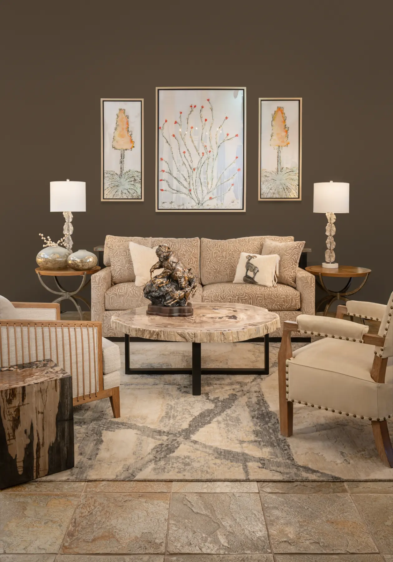 Step into Sue Bickerdyke Interiors in Carefree, Arizona, to explore the boundless possibilities of custom sofas and sectionals that await you. Here, your perfect furniture piece is not just possible—it's within reach, customized in every aspect to reflect your style and personality.